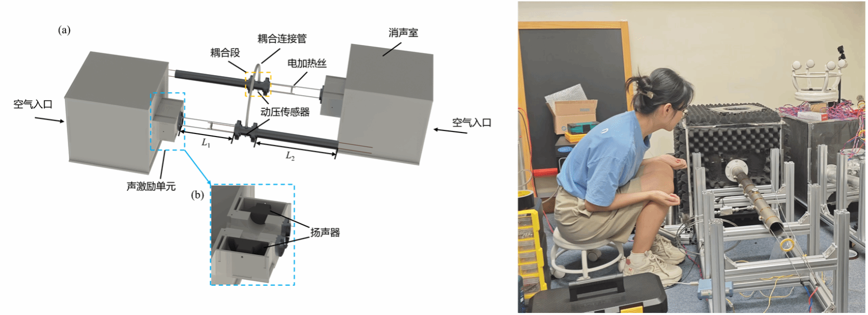 为解决发动机燃烧室燃烧不稳定问题,实验室搭建了耦合热声实验系统。考虑到实际热声系统的复杂性,分别考虑了两种不同复杂程度的耦合热声系统,包括耦合电加热Rijke管热声系统及耦合贫燃预混富氢燃烧室实验系统。实验系统主要包括声激励系统、空气供应系统、温度测量系统、速度测量系统、动态压力测量系统及数据采集系统等。