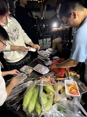 与此同时进行的烧烤则是一场欢乐和美食的盛宴。同学们自行分成小组,齐心协力地点燃炭火,洗菜,穿肉,煮茶,烤肉。不一会儿,空气中便弥漫着烤肉的香气。大家一边忙碌地翻烤着食物,一边欢声笑语,分享着烹饪的乐趣。在烧烤的过程中,同学们互相帮助、互相配合,增进了彼此之间的了解和信任。美味的烧烤不仅满足了大家的味蕾,更让同学们在合作中感受到了团队的力量。