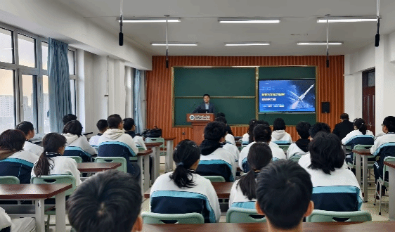 严启龙教授以《固体火箭推力控制—燃烧的力量》为题,深入浅出地介绍了固体火箭发动机的工作原理及推力控制技术。他结合国内外航天发展现状,通过生动的案例和互动问答,向同学们展示了固体推进剂在火箭推进中的关键作用。严教授还鼓励同学们让勤奋在最美的年华里熠熠闪光,同时向在场的所有同学发出了热情的邀请,欢迎大家走进西北工业大学。