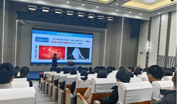 张庆华教授则以《走进含能材料的奇妙世界》为题,带领同学们领略了含能材料的独特魅力。他从日常生活中的常见的含能材料入手,逐步延伸到含能材料历史、含能材料前沿动态等,通过视频展示、互动问答等方式,让同学们深刻感受到航天科技的趣味性和前沿性,赢得了现场阵阵掌声。
