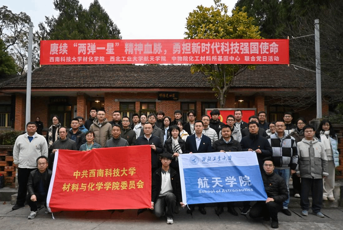 党委书记黄越、副书记韩冬、空天能源技术研究所严启龙书记带队,携张庆华、聂洪奇等教师骨干与师生融合支部优秀学生党员一行赴绵,与西南科技大学材料与化学美高梅博彩