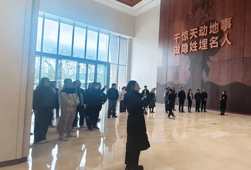 随后,党员同志们走进邓稼先故居,追寻“两弹元勋”的奋斗足迹。故居内简朴的陈设、珍贵的手稿与照片,诉说着邓稼先放弃国外优渥条件归国、隐姓埋名投身核试验、带病坚守岗位的平凡而伟大的一生。参观后,黄越书记、韩冬副书记、金波书记与李鸿波主任代表全体党员向邓稼先铜像敬献花篮,红黄相间的缎带随风轻拂,"致敬两弹元勋邓稼先"的金色字样在阳光下熠熠生辉。全体人员向铜像行三鞠躬礼,表达对这位科学巨匠的深切缅怀与崇高敬意。此后,在黄越书记与金波书记的领誓下,全体党员面向党旗,高举右拳,庄严重温入党誓词。铿锵誓言回荡于两弹城上空,亦铭刻在每一位党员心中,凝聚起薪火相传、奋楫争先的坚定信念。