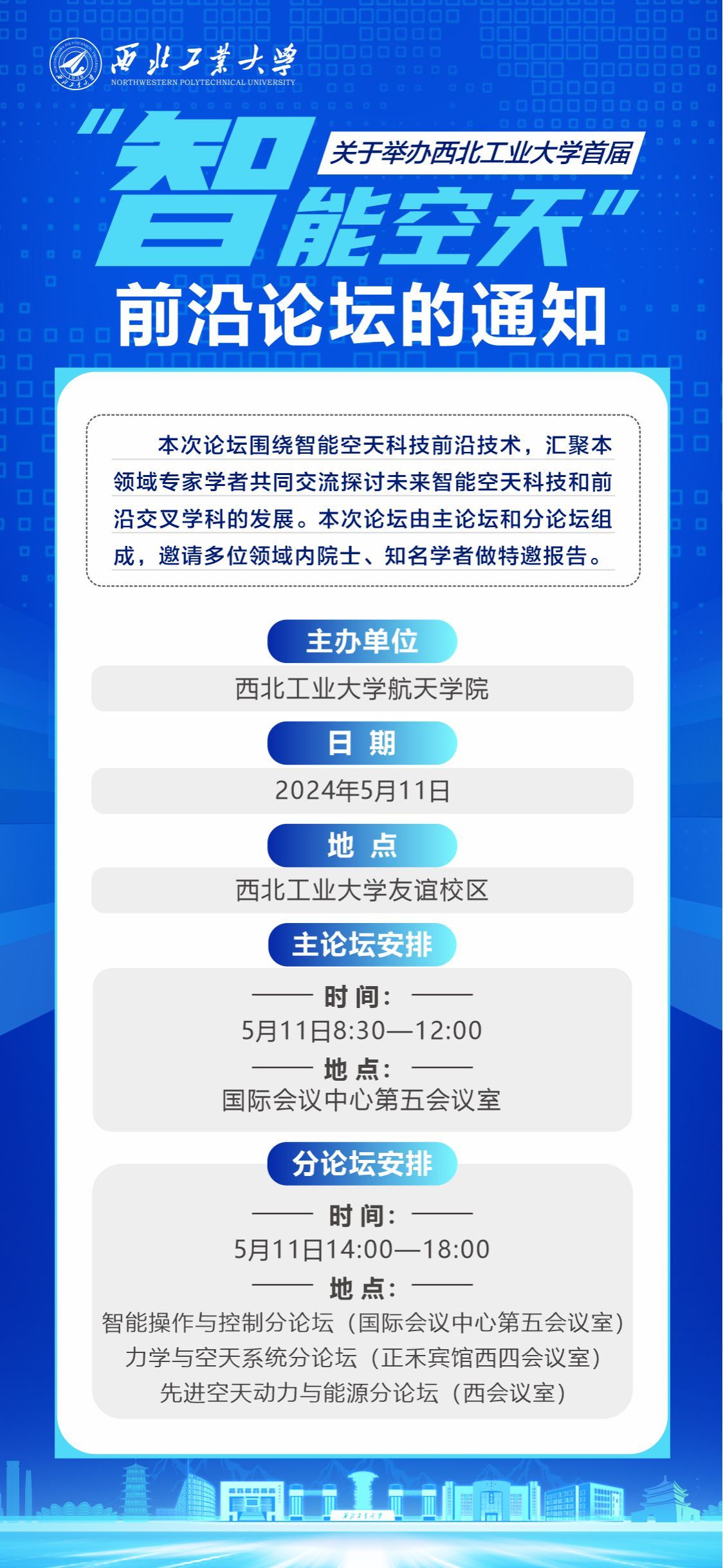 关于举办西北工业大学首届“智能空天”前沿论坛的通知